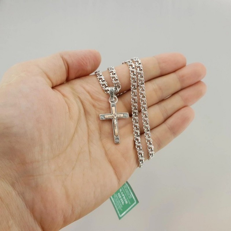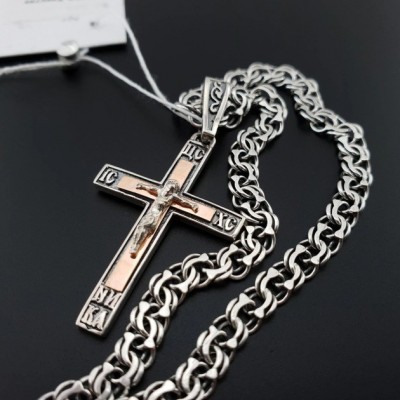 Xarkov istehsalı, qızıl detallar və qaraltma ilə bəzədilmiş kişi gümüş zəncir və xaç dəsti, uzunluğu ₽3600.0 |